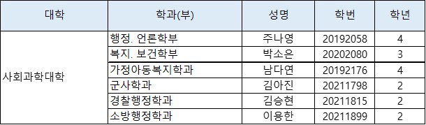 – 직전학기 성적 최우수자로 학과의 추천을 받은 자 (학과(부)별 1명)